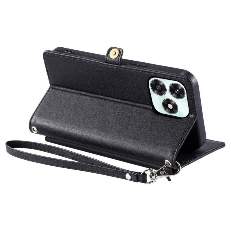 Étui élégant en cuir PU premium avec fonction portefeuille intégrée. Dispose de 3 emplacements pour cartes, 1 compartiment pour billets, et un support pliable ajustable. Livré avec une dragonne pratique pour un transport mains libres.