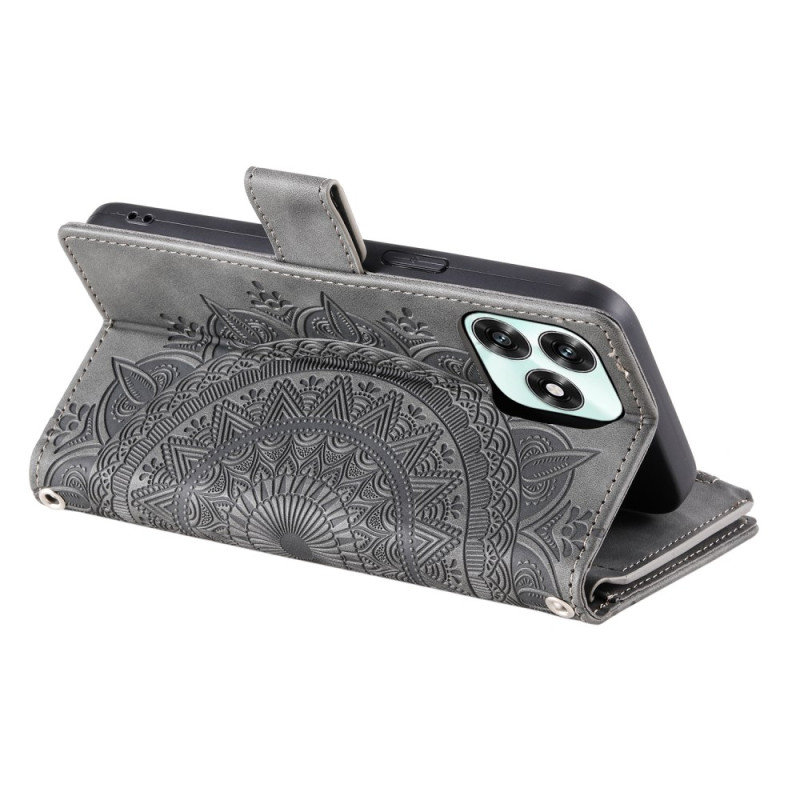 Étui portefeuille élégant en cuir PU premium avec motif fleur mandala. Doté de multiples emplacements pour cartes, d'une poche zippée et d'une fermeture magnétique sécurisée. Inclut une dragonne pratique et une fonction support mains libres.