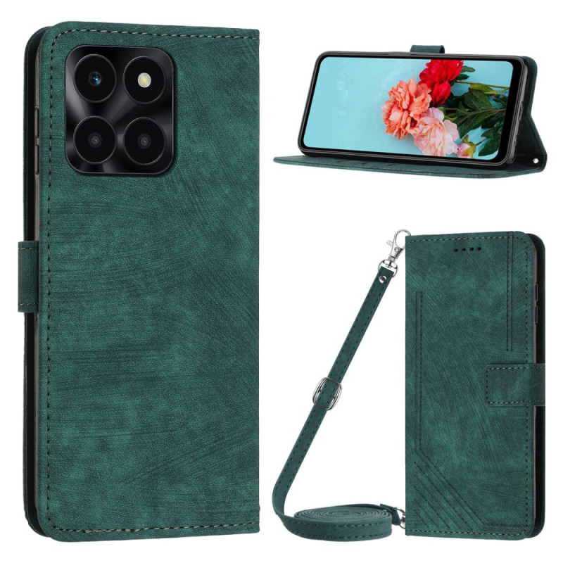 Étui portefeuille élégant en cuir PU pour Honor X6a 4G. Design à rabat avec compartiments pour cartes et argent, fonction support ajustable, fermeture magnétique sécurisée et bandoulière amovible pour un transport pratique au quotidien.