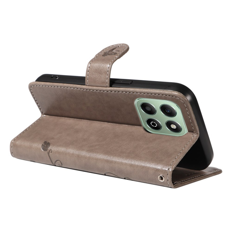 Elegant wallet case with printed floral motif for Honor X6c 4G / X6b 4G / X6a 4G / X5b / X5b Plus. Premium leather design with support function, card slots and practical hand strap. Complete protection and refined style for your phone.