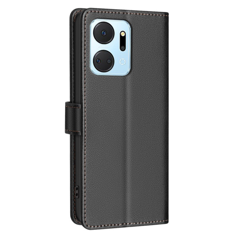 Premium lychee-textured PU leather case for Honor X7a 4G. With 3 card slots, 1 silver pocket and anti-RFID technology. Secure magnetic clasp and hands-free support function for optimum everyday comfort.