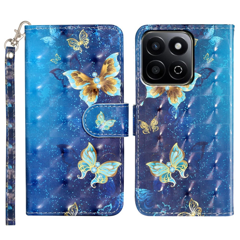 Protect your Honor X7c 5G / 4G / 200 Smart 5G in style with this wallet case featuring a gold-blue 3D butterfly motif. Featuring card slots, an adjustable stand and a secure magnetic closure, it combines style and functionality. Supplied with removable hand strap.