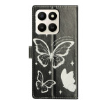 Elegant flap wallet case for Honor X7d 5G with sophisticated butterfly print. Includes 2 card slots, 1 photo pocket and a cash compartment. Integrated stand function for hands-free viewing. Secure magnetic closure and detachable hand strap included.