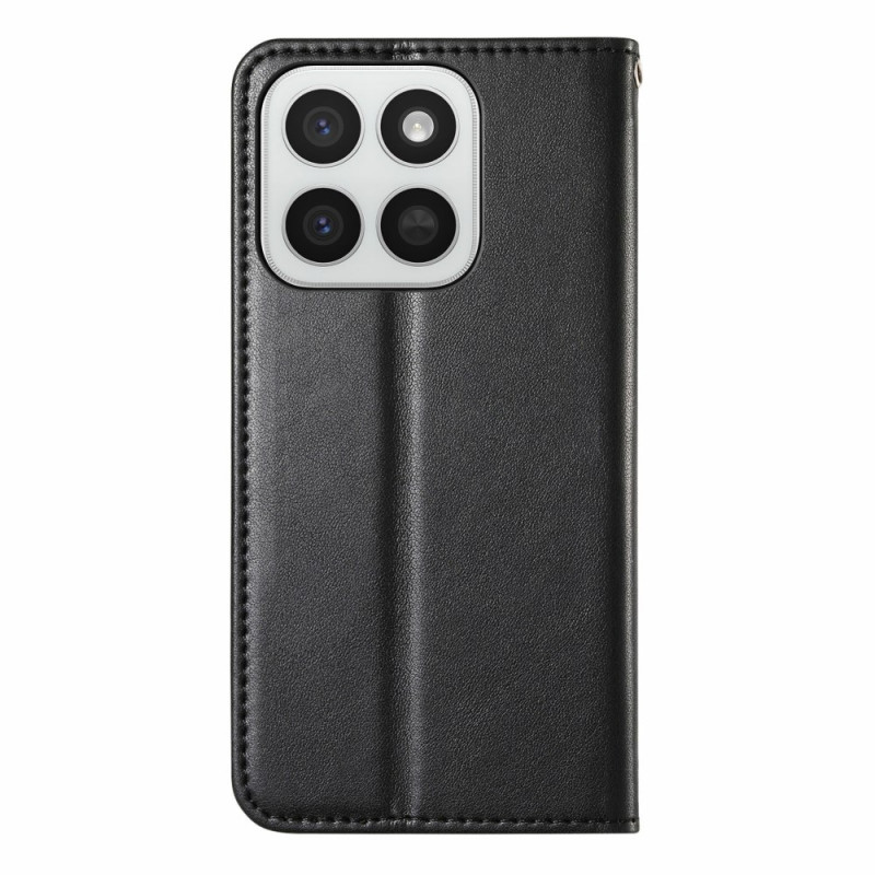 Étui portefeuille élégant pour Honor X7d 5G. Doté de coutures tricolores raffinées, 2 emplacements pour cartes, 1 poche pour billets et une dragonne pratique. Fermeture magnétique sécurisée et fonction support mains libres incluse.