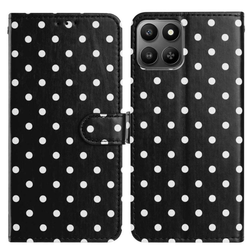 Stylish PU leather wallet case with polka dot pattern for Honor X7d 5G / Honor 400 Smart 5G. Featuring 3 card slots, an adjustable viewing stand and a secure magnetic closure for complete everyday protection.