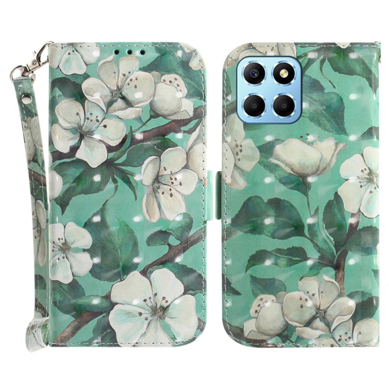 Protect your Honor X8 5G in style with this wallet case with flap decorated with watercolour flowers. With card slots, a cash compartment and a practical hand strap, it combines style and functionality.