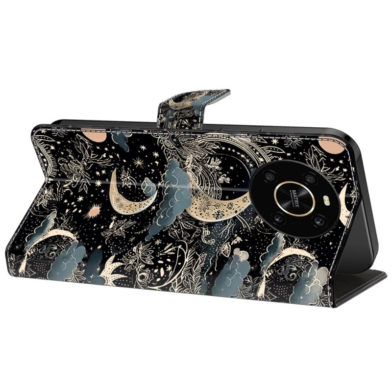 Elegant case for Honor X9 5G combining style and functionality. Refined design with moon motif, integrated wallet with 2 card slots and 1 banknote pocket. Adjustable stand for hands-free viewing. Full anti-shock and anti-scratch protection.