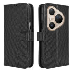 Elegant wallet case with diamond texture for your Huawei Pura 80 Pro. Features card slots, cash pocket and practical hand strap. Secure magnetic closure and integrated folding stand for hands-free viewing.