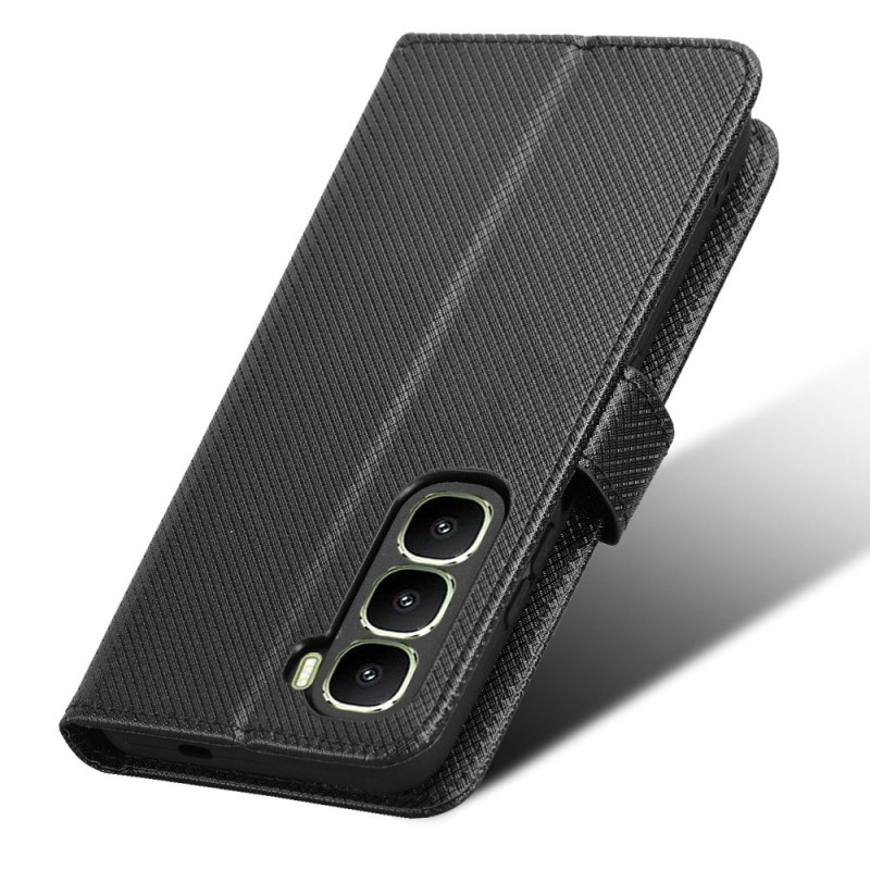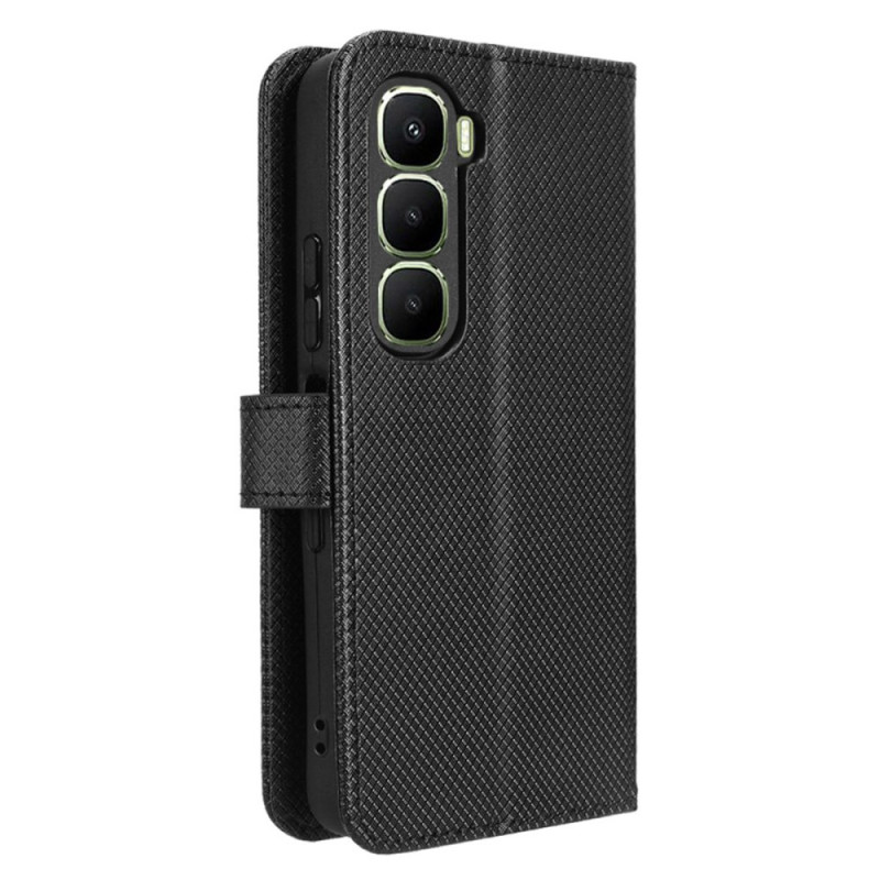Protect your Infinix Hot 60 5G / Hot 60i 4G in style with this diamond-textured PU leather wallet case. Featuring card slots, a foldable stand and a practical wrist strap, it combines style and functionality for complete everyday protection.