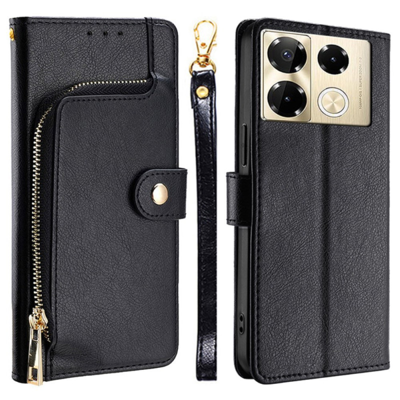 Discover this multifunction PU leather case for the Infinix Note 40 Pro 4G. Featuring a zipped pocket, card slots, a foldable stand and a practical strap, it combines style and protection for everyday use. The waxed texture adds an elegant touch.