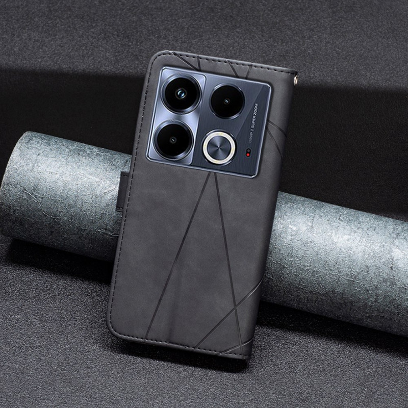 Discover the BINFEN COLOR wallet case for the Infinix Note 40, combining elegance and practicality. With its modern geometric design, card slots, adjustable holder and magnetic closure, protect your phone in style.