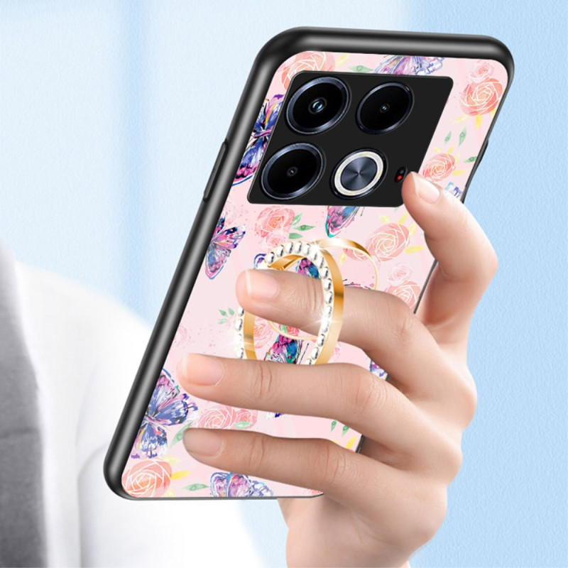 Protect your Infinix Note 40 in style with this tough tempered glass case. Its multi-layer design combines hard plastic, soft TPU edge and glass back for optimum impact protection. The foldable metal support ring offers comfortable viewing.