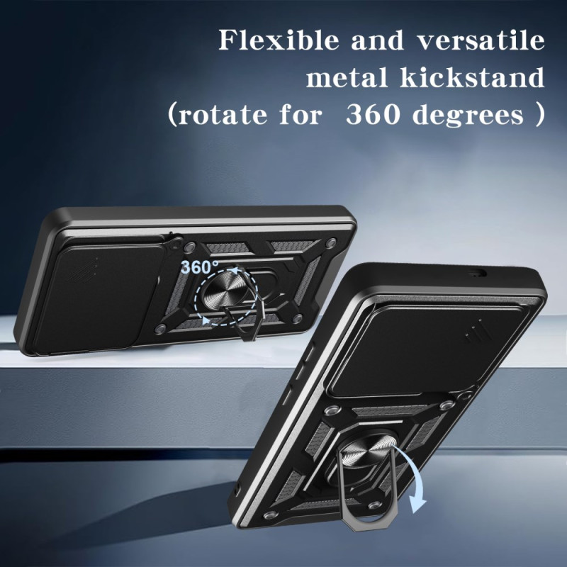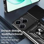 Protect your Infinix Note 40X 5G with this rugged case featuring sliding camera protection, a multi-angle rotating kickstand and military-grade impact resistance. Compatible with magnetic car mount.