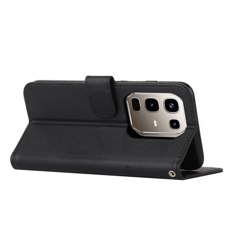 Stylish wallet case for Infinix Note 50X 5G with integrated stand. Features 2 card slots, 1 photo pocket and 1 cash compartment. Secure magnetic closure and practical hand strap included for easy carrying.