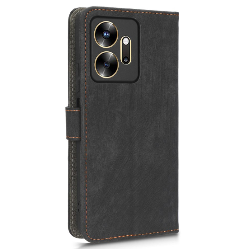 Multifunction wallet case for Infinix Zero 20 4G X6821 with integrated RFID protection. Features 3 card slots, a note compartment and hands-free support. Secure magnetic closure and hand strap included.