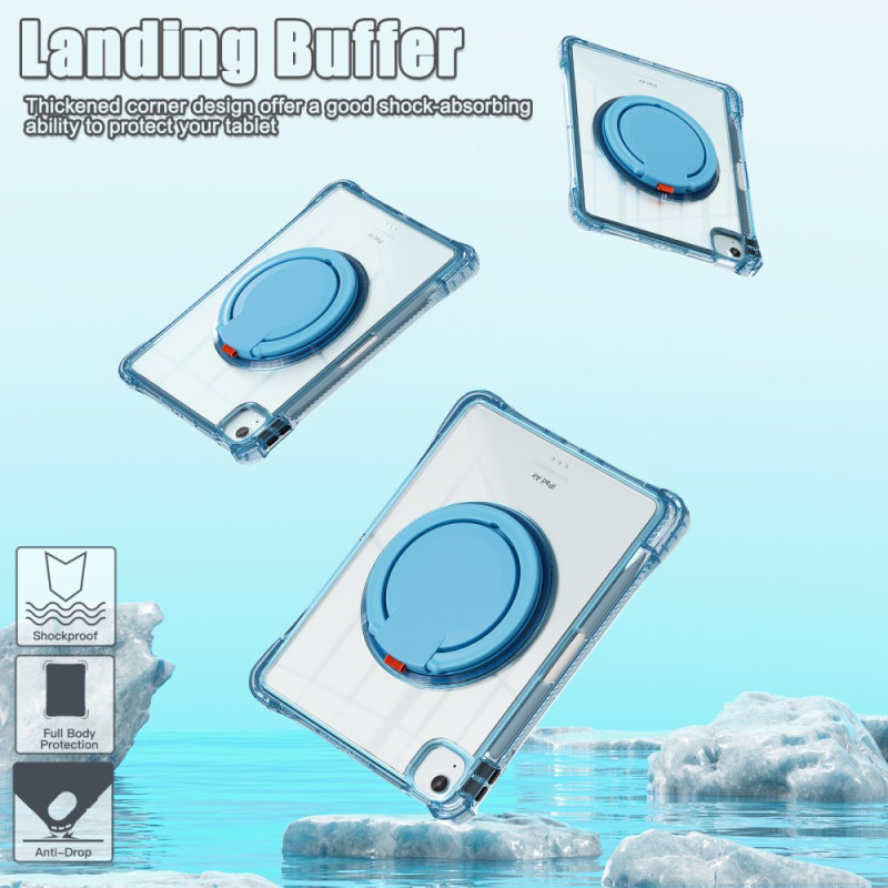 Discover our versatile case for iPad Air 11 (2025) (2024)/Air (2022) (2020)/ Pro 11 (2022) (2021) (2020) (2018), featuring a 360° rotating handle, full body protection, shock-absorbing corners, adjustable stand, clear acrylic back and adjustable nylon shoulder strap.