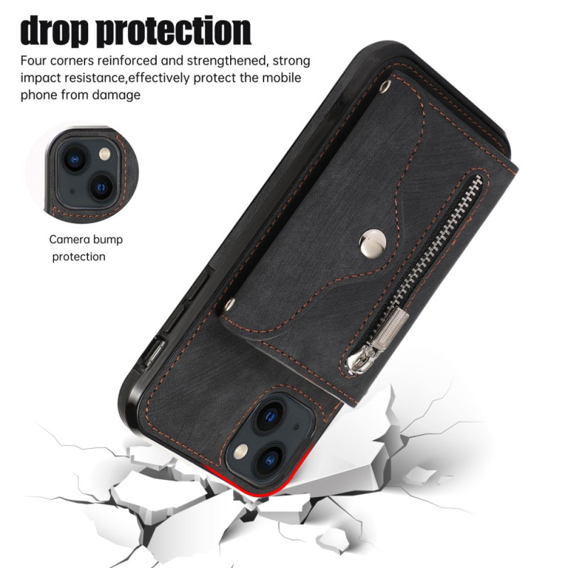 Protect your iPhone 13 Mini in style with this multifunction wallet case. With multiple card slots, RFID protection and a secure zipped pocket, it combines elegance and practicality for everyday use.