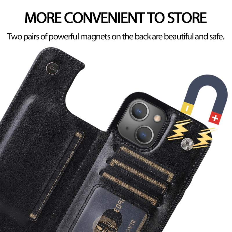 Protect your iPhone 13 Mini in style with this Crazy Horse effect textured PU leather case. It has an integrated card holder, hands-free support and double magnetic fasteners for optimum security.
