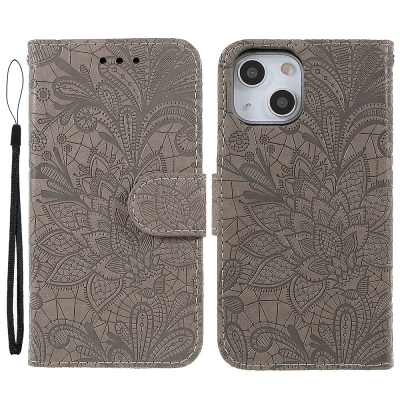 Discover this elegant wallet case with flap featuring a lace floral motif. With multiple card slots, a practical stand function and a secure wrist strap, it combines refined style with optimum protection for your iPhone 13 mini.