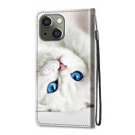 Protect your iPhone 13 Mini in style with this stylish wallet case featuring a white cat motif. It features a practical fold-out holder, compartments for cards and cash, and a secure magnetic closure.