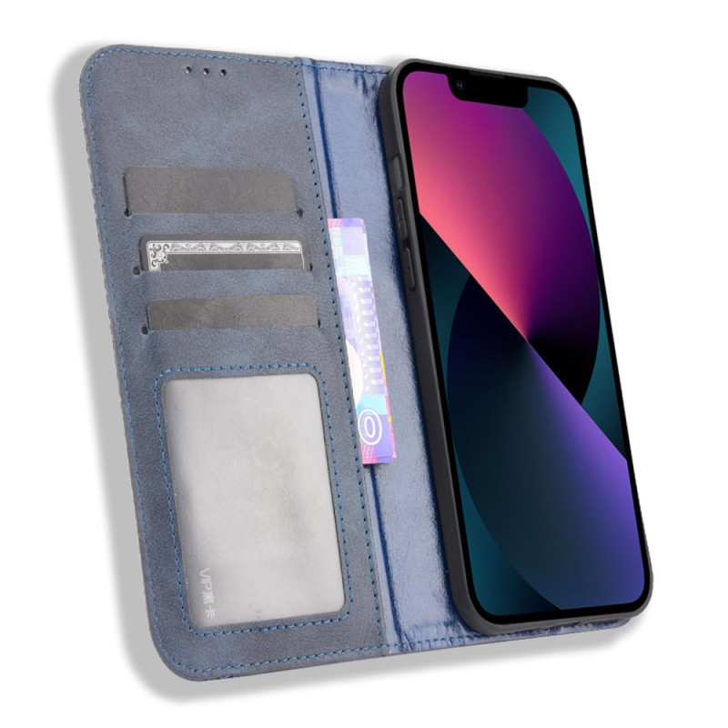 Protect your iPhone 13 Mini in style with this vintage PU leather wallet case. Featuring an engraved mosaic border, card slots, adjustable stand and automatic magnetic closure.