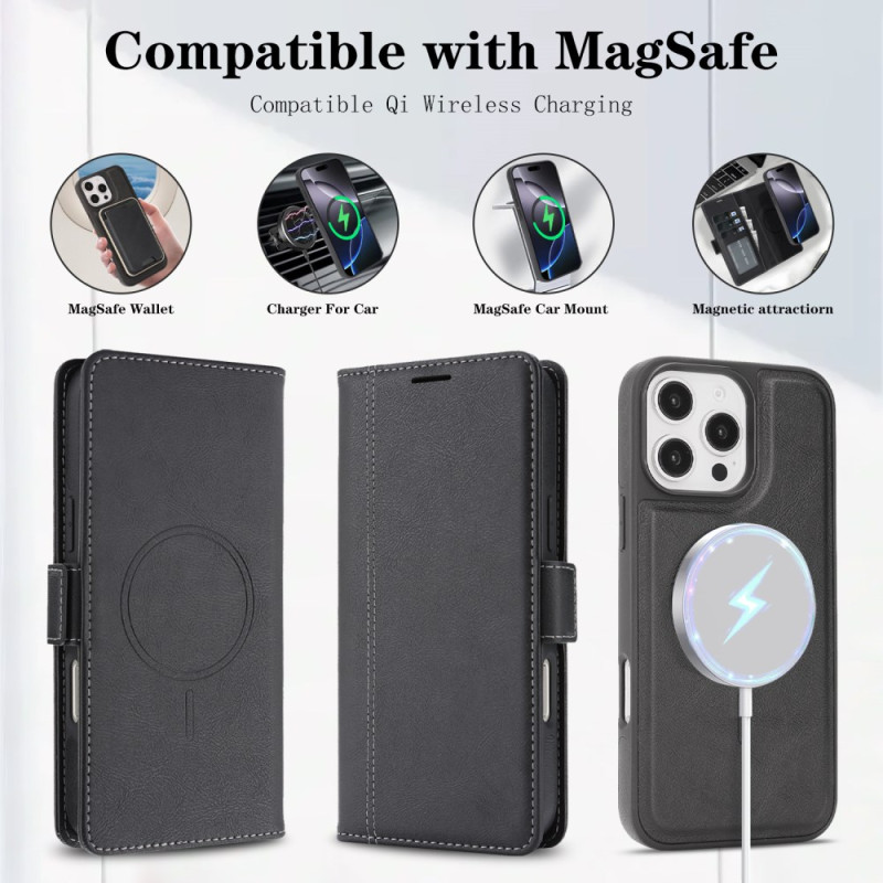 Discover the perfect blend of elegance and practicality with this detachable 2-in-1 wallet case for iPhone 13 Pro Max. MagSafe compatible, it offers complete protection while incorporating several card slots.