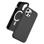 Protect your iPhone 13 Pro Max in style with this premium case with its silky touch and carbon fibre texture. MagSafe compatible, it offers optimum protection against bumps and scratches while retaining a sleek, professional design.