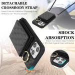 Multifunctional case with adjustable lanyard, 3 card slots, integrated mirror and RFID protection. Elegant design with grid pattern and foldable stand for optimum hands-free use.