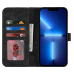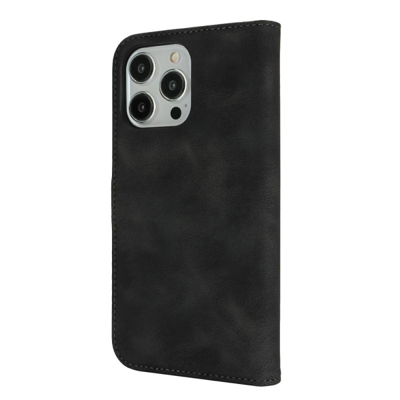 Multifunction wallet case in premium PU leather for iPhone 13 Pro Max / 12 Pro Max. Store your cards, cash and protect your phone in style. Secure magnetic closure and integrated support function for optimum comfort.