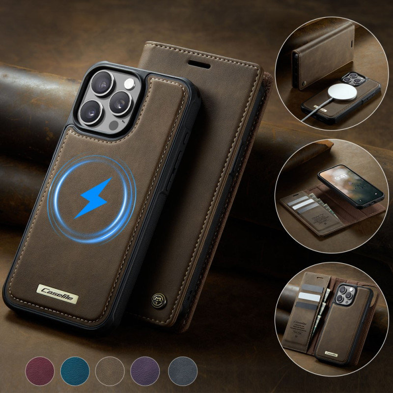 Discover the CASEME wallet case for iPhone 13 Pro Max, combining premium protection and practicality. MagSafe compatible with RFID technology, detachable 2-in-1 design and integrated stand for an optimal everyday experience.