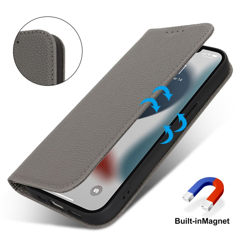 Discover our stylish flap case in textured leather for iPhone 13 Pro Max and 12 Pro Max. With an integrated stand, 3 card slots and a secure magnetic closure, this case combines style and functionality.
