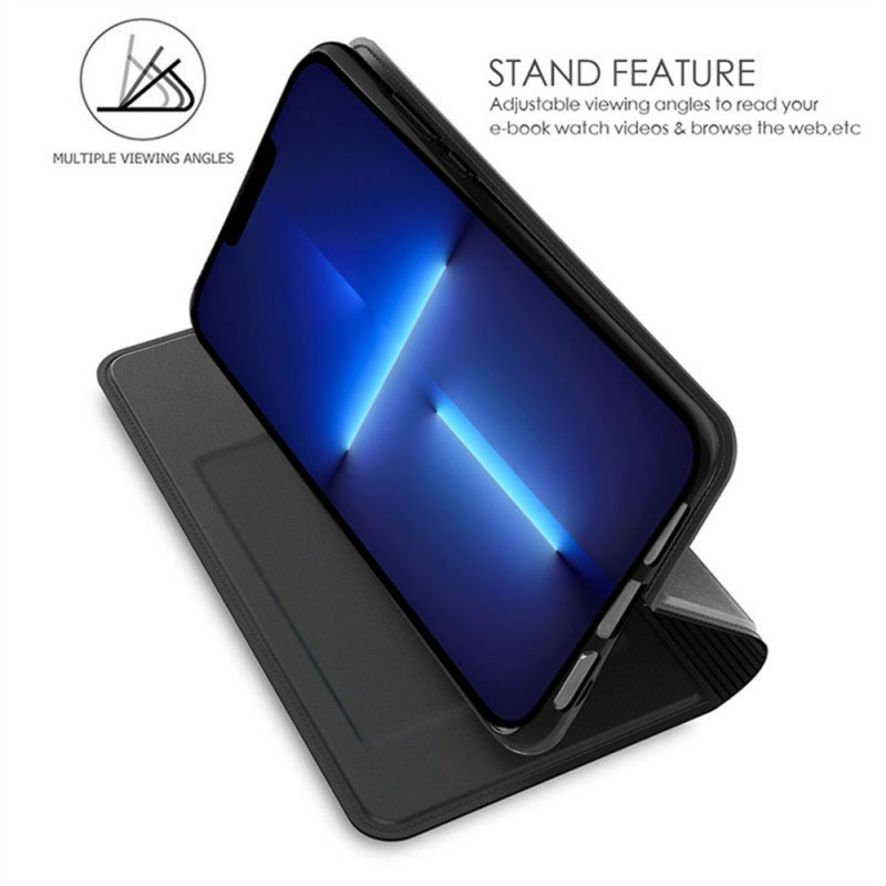 Protect your iPhone 13 Pro Max in style with this multifunction case in silk-textured PU leather. Featuring an integrated card holder, adjustable support and secure magnetic closure, this accessory combines practicality with optimum protection.