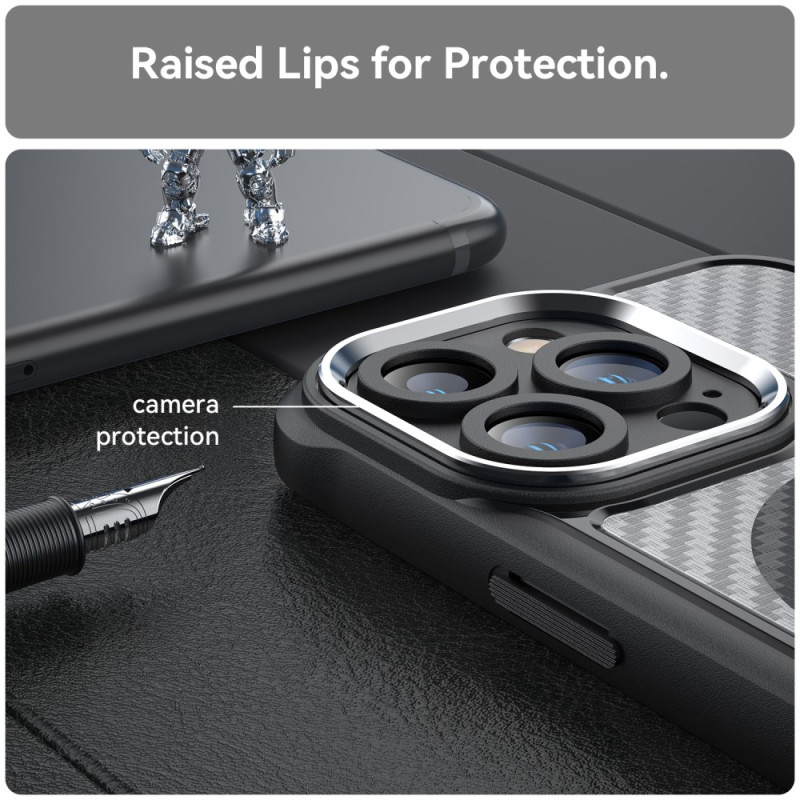 Premium protection for your iPhone 13 Pro Max with MagSafe compatibility. This case combines robustness and elegance thanks to its anti-scratch carbon fibre texture. Give your smartphone optimum protection against bumps and scratches.