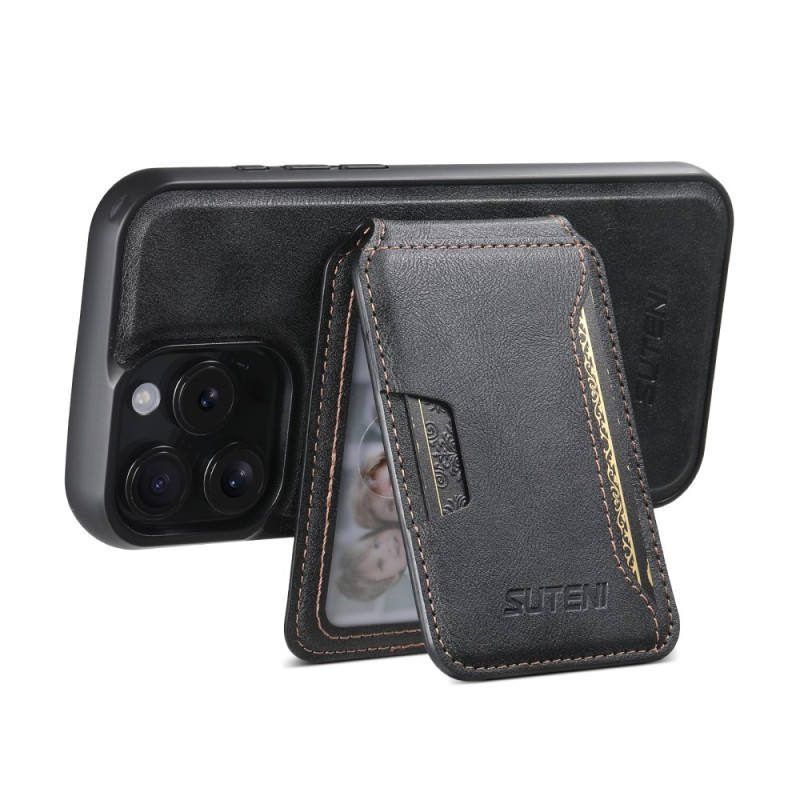 Detachable magnetic 2-in-1 case for iPhone 13 Pro with leather texture. MagSafe compatible, integrated 3-slot card holder. Complete protection against bumps and scratches with magnetic attachment for car mount.