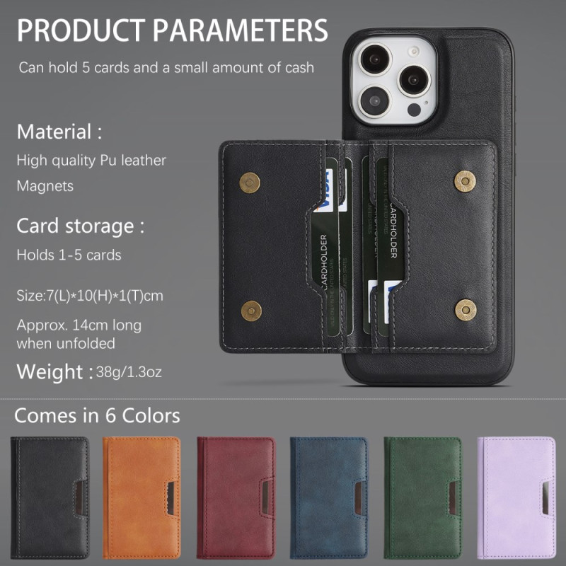 Sophisticated case for iPhone 13 Pro combining premium protection and functionality. Features a detachable magnetic card holder, adjustable stand and MagSafe compatibility for wireless charging. Stylish bi-fold design.