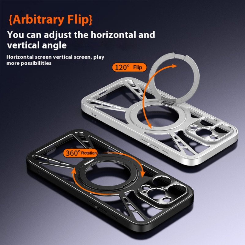 Protect your iPhone 13 Pro with this innovative case featuring an integrated rotating stand, a MagSafe compatible magnetic design and an openwork design for optimum heat dissipation. Enjoy enhanced protection.