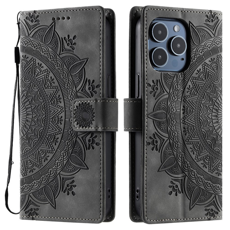Protect your iPhone 13 Pro in style with this premium PU leather wallet case. Featuring a stylish mandala design, 3 card slots, magnetic closure and integrated stand for hands-free use.