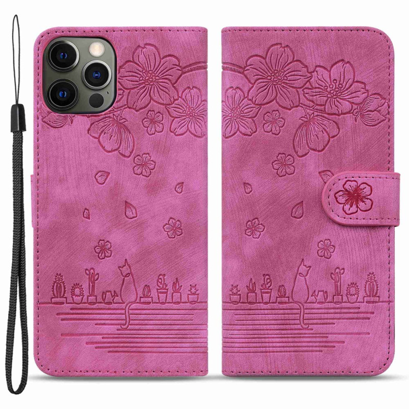 Protect your iPhone 13 Pro in style with this premium PU leather wallet case. Its refined design featuring a cat and cherry blossom combines shock protection with a practical card holder and stand function. Secure magnetic clasp and hand strap included for easy everyday transport.