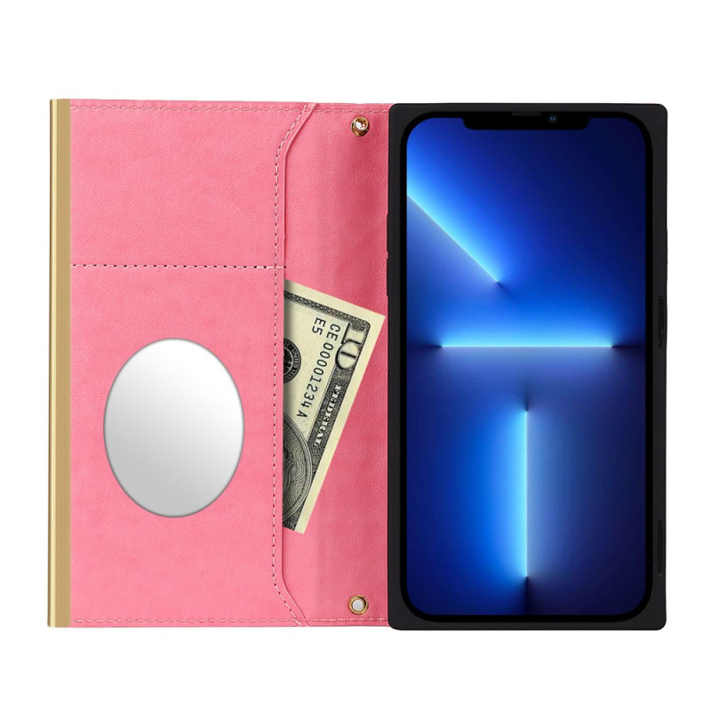 Elegant multifunction crossbody phone bag with sophisticated quilted texture. Features an integrated make-up mirror, cash compartment and practical hands-free holder. Comes with adjustable shoulder straps.