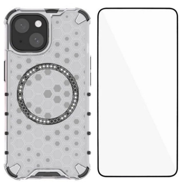 Discover our TPU+PC hybrid case for iPhone 13, combining elegance and optimum protection. Its translucent honeycomb design, reinforced corners and MagSafe compatibility make it an essential accessory. Enjoy maximum protection with the tempered glass included, and perfect shots thanks to the large cutout for the lens.