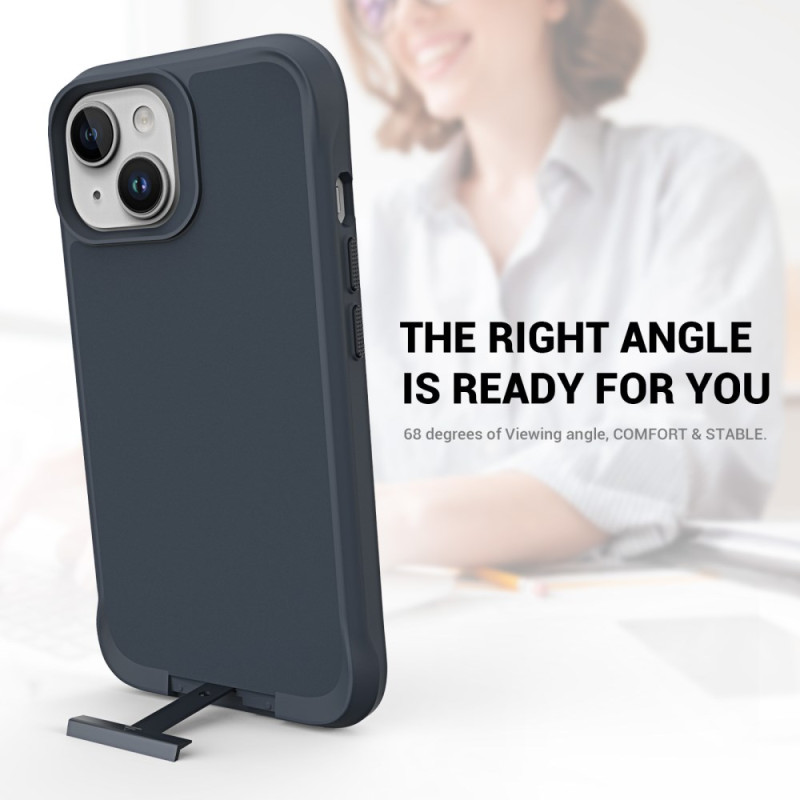 Discover our innovative protective case for iPhone 14 Plus. MagSafe compatible, it offers hybrid protection with a rubber coating and microfibre lining. Its integrated aluminium alloy support allows vertical and horizontal viewing...