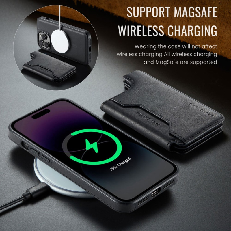 Discover the MAGKING case for iPhone 14 Pro Max, combining durability and functionality. Made from PC, TPU and PU, it offers excellent shock absorption and long-term durability. Its adjustable stand makes it easy to switch between reading and watching films, with a maximum angle of 135°. The integrated magnetic design ensures compatibility with MagSafe wireless charging. The 2-in-1 design makes it easy to detach and combine the slim case and wallet thanks to the MagSafe-compatible magnetic connection. The wallet incorporates RFID blocking material to protect your private information from unauthorised scans. With 7 card slots and a side pocket, it offers versatile storage for your essentials.
