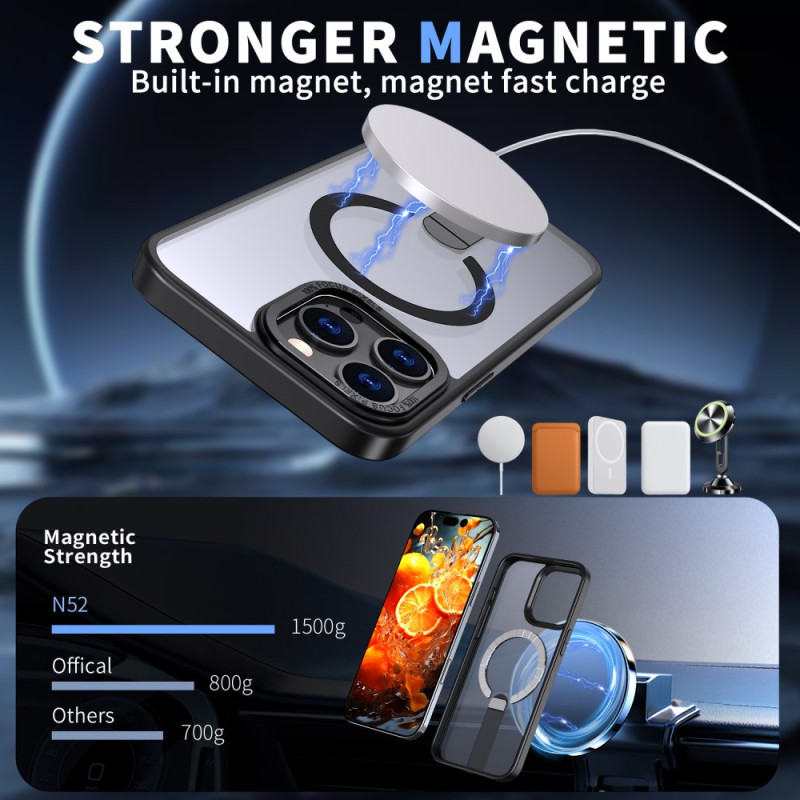 Its powerful magnetic ring ensures perfect compatibility with MagSafe chargers and magnetic car mounts.
