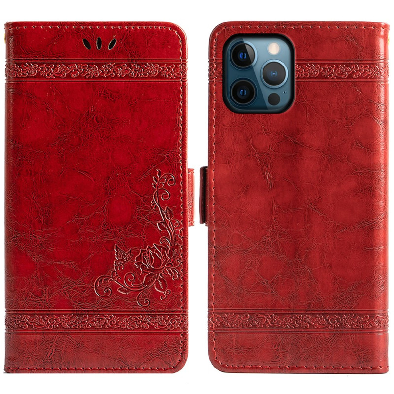 Discover this elegant wallet case for iPhone 14 Pro Max that combines style and functionality. Its sophisticated design with engraved floral motif offers optimum protection while allowing you to store cards and cash. Features a magnetic side clasp.