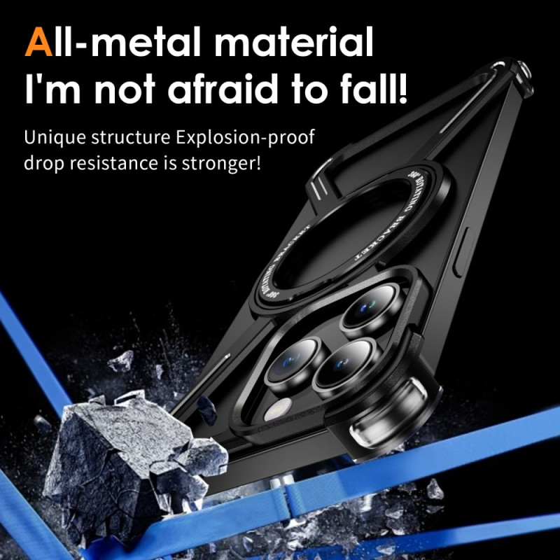 Discover our innovative bumper case for iPhone 14 Pro. Featuring a 360° rotating support, it is MagSafe compatible and offers excellent heat dissipation. Its minimalist metal design with borderless frame ensures optimum protection while preserving the aesthetics of your device.
