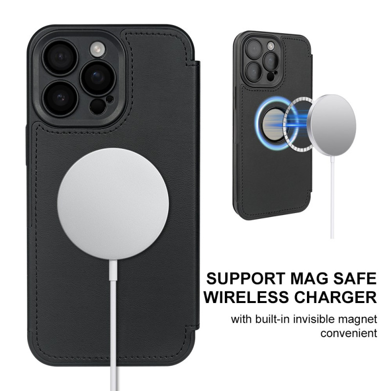 Discover our eco-friendly cover for iPhone 14 Pro, made from RCS-certified recycled materials. Featuring a magnetic closure, compatible with MagSafe wireless charging and equipped with RFID blocking technology, this cover combines practicality and security for your smartphone.