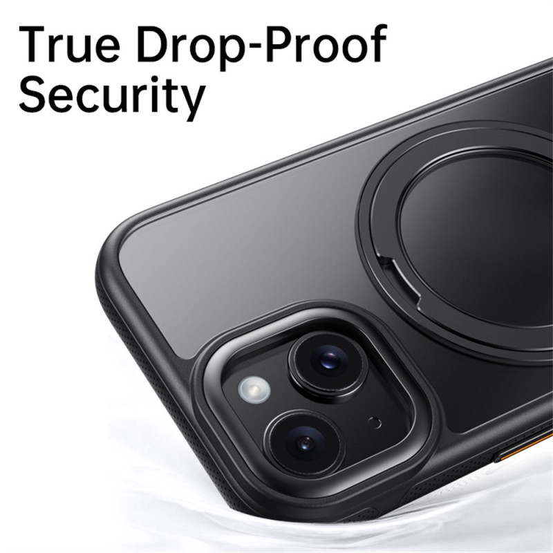 Discover our innovative protective case for iPhone 14. Featuring a 360° rotating stand, it offers MagSafe compatibility, reinforced protection for the camera and precise openings for the speakers. Enjoy a comfortable grip and stylish finish, while retaining the option of wireless charging.