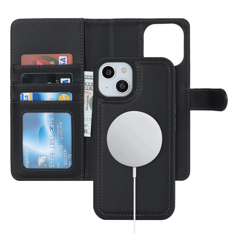 Discover our detachable anti-drop protective case for iPhone 14 / 13. Made from textured PU leather and soft TPU, it offers retro style and durable impact protection. Its magnetic 2-in-1 design allows for versatile use, while MagSafe compatibility ensures convenient wireless charging.