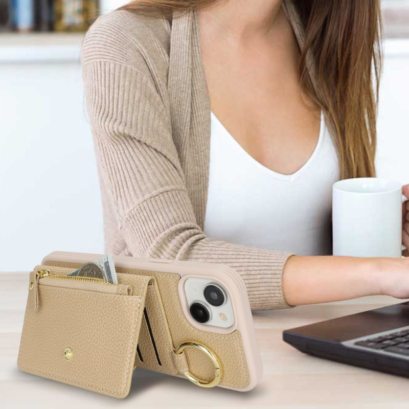 Discover our versatile phone case for iPhone. Made from textured PU leather and flexible TPU, it offers durable protection and a luxurious feel. With a zipped wallet, multiple card slots, integrated stand and retaining ring, this case combines functionality and style for practical everyday use.