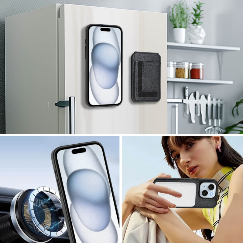 Discover our innovative magnetic case for iPhone 15 Plus. Combining elegance and functionality, it offers premium PU leather and TPU protection, a detachable card holder for up to 3 cards, and MagSafe compatibility for convenient wireless charging. Its versatile design includes an integrated stand for hands-free viewing and a magnetic car mount.
